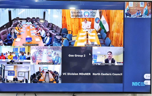 Union Minister for Communications and Development of North Eastern Region, Shri Jyotiraditya M. Scindia, today virtually interacted with the first batch of students participating in the Ashtalakshmi Darshan Youth Exchange Programme. The session was also attended by the Secretary, DoNER, Joint Secretary, DoNER, and the Acting Vice Chancellor and Registrar of Rajiv Gandhi University (RGU).