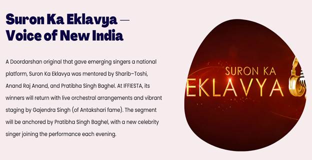 फेस्टिवल शोकेस: बैटल ऑफ बैंड्स (भारत और अंतर्राष्ट्रीय), सुरों का एकलव्य, वाह उस्ताद, देवांचल की प्रेम कथा (विशेष प्रदर्शन)