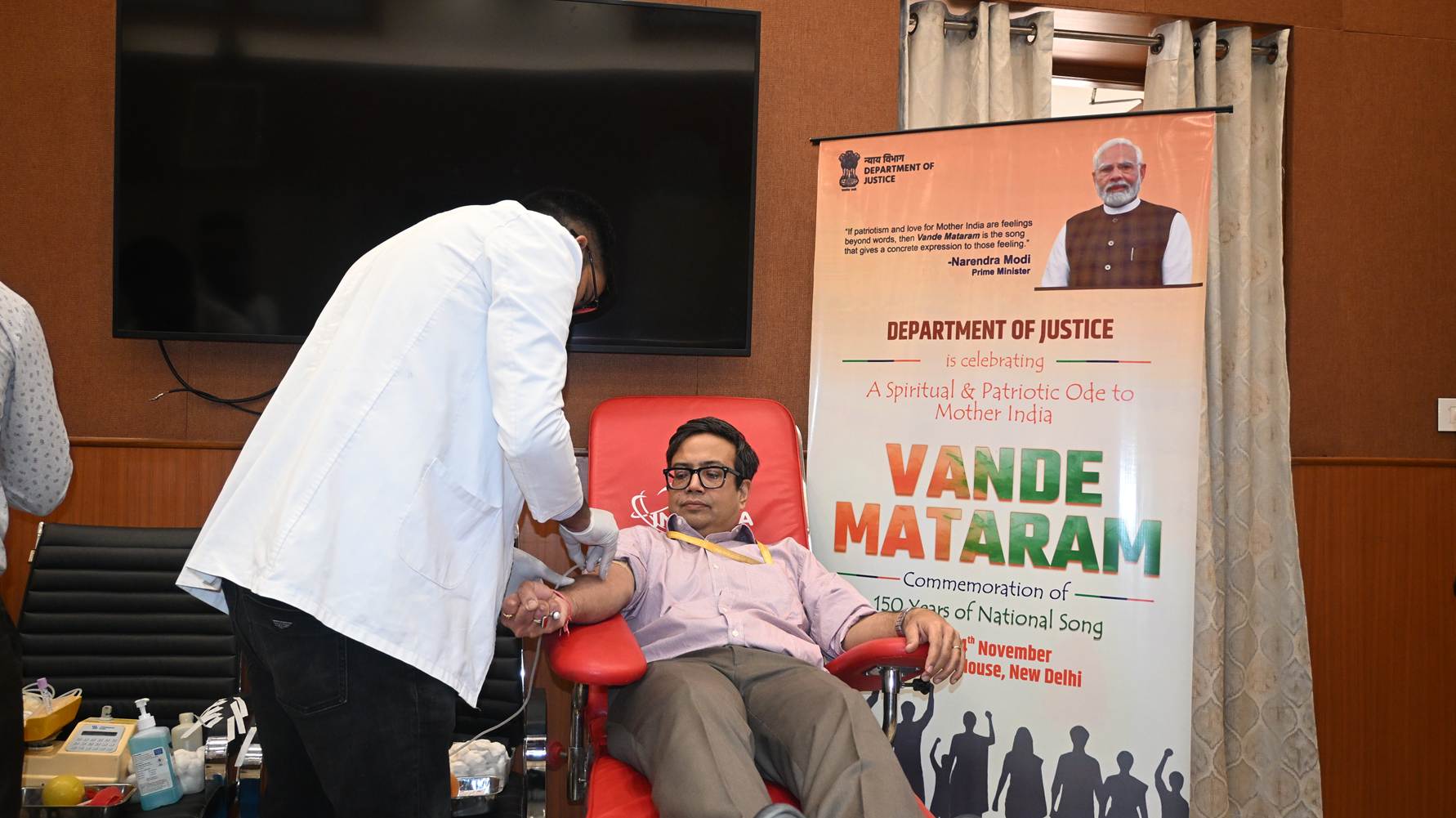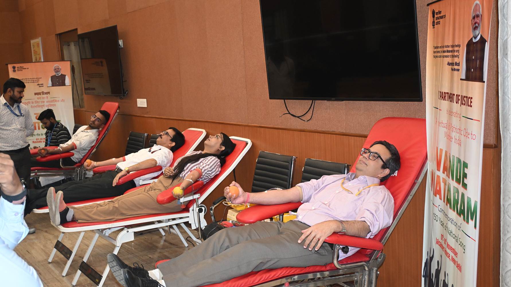 - On 14.11.2025, a Blood Donation Camp was organized at Department of Justice, Jaisalmer House led by doctors and paramedic staff of Dr Ram Manohar Lohiya Hospital, New Delhi. Officers/staff of Department of Justice participated in the camp and donated blood voluntarily for this noble cause. Secretary (Justice) and other senior officers led the staff in contributing to this worthy cause.