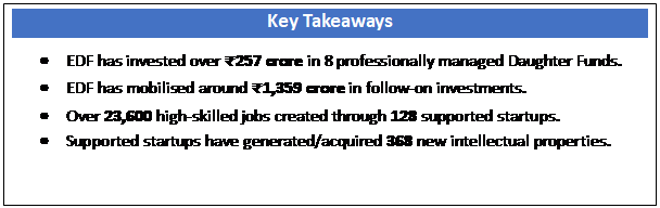EDF has been established to create a strong foundation for innovation and research in India’s electronics and information technology sectors. It aims to strengthen the ecosystem by supporting funds that provide risk capital to startups and companies engaged in developing cutting-edge technologies.