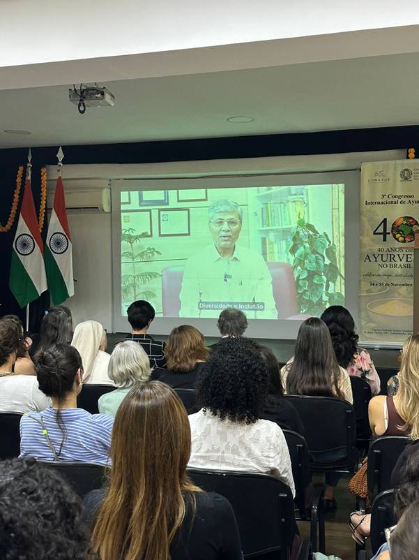 The conference was inaugurated by Ambassador of India to Brazil, H.E. Shri Dinesh Bhatia, who highlighted the growing collaboration between India and Brazil in traditional systems of healthcare. He observed that Ayurveda’s global relevance is being reinforced through advancing scientific research and international collaboration, which will further find expression at the forthcoming WHO–Ministry of Ayush Global Summit on Traditional Medicine, to be held in New Delhi from 17th to 19th December 2025
