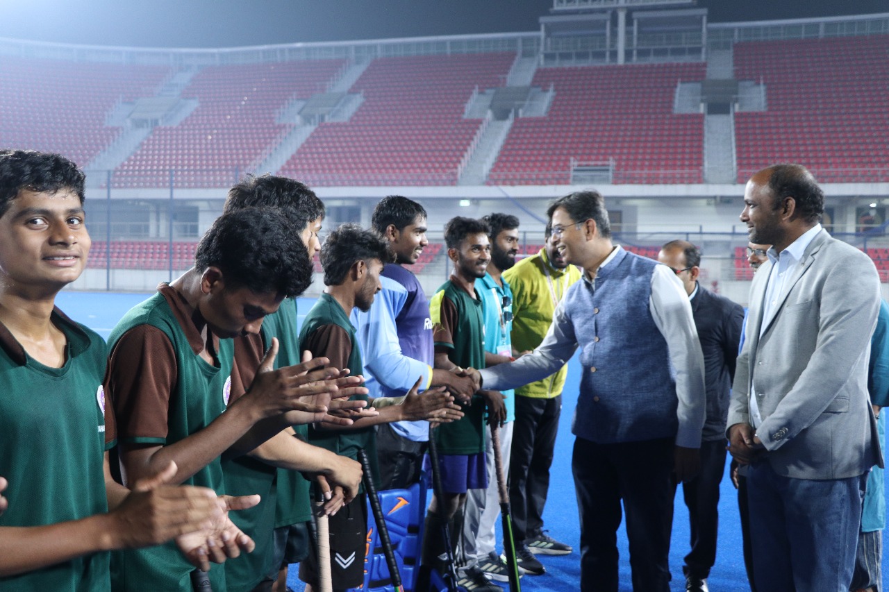 Shri Ajeet Kumar Shrivastava, Commissioner, National Education Society for Tribal Students (NESTS), attended the Boys’ Hockey Final of the 4th National EMRS Sports Meet 2025 at the International Birsa Munda Hockey Stadium, Rourkela. Shri Vipin Kumar, Joint Commissioner, and Ms. Rashmi Chaudhary, Assistant Commissioner, NESTS, were also present during the final match.