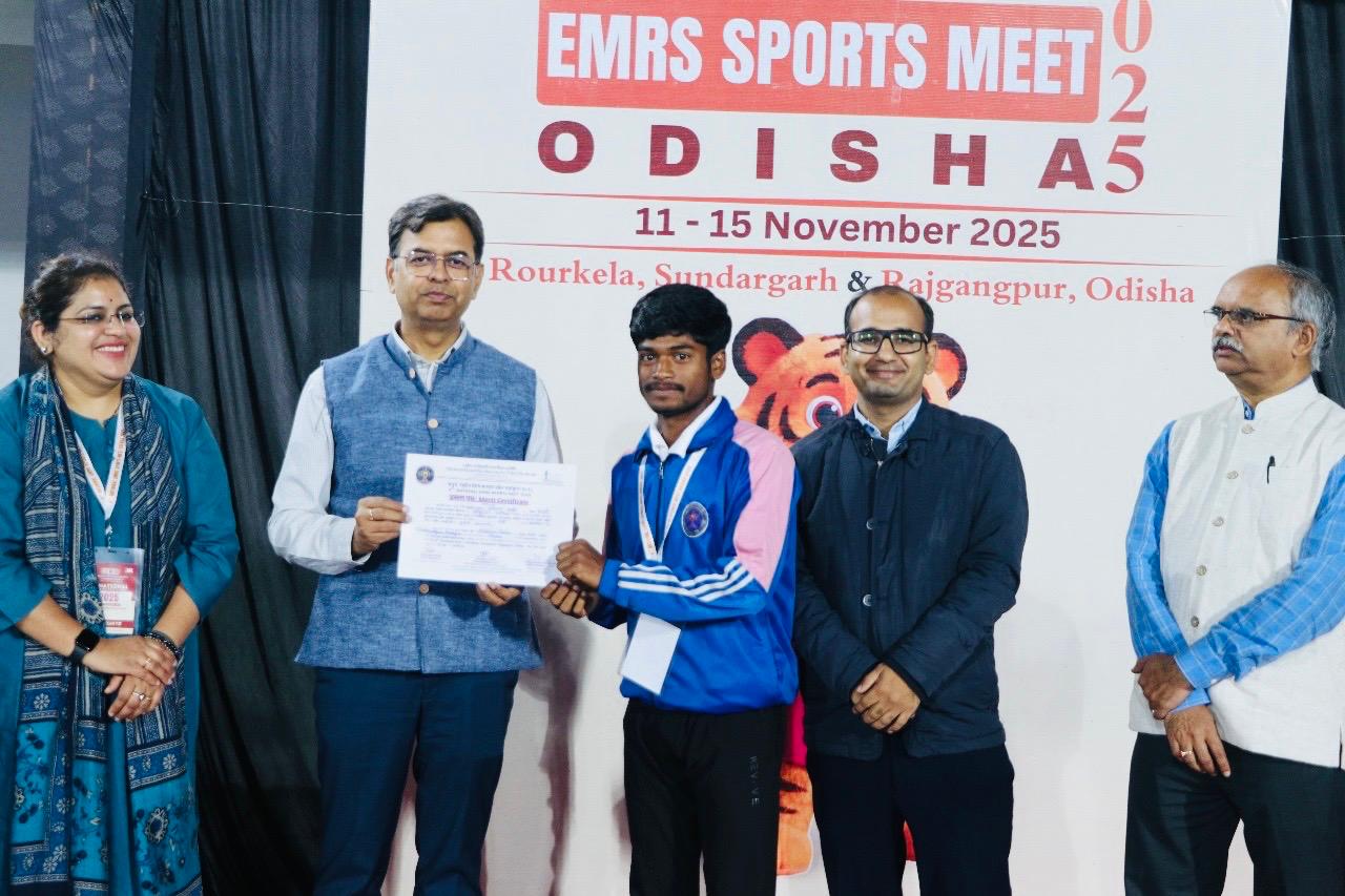 Addressing the occasion, the Commissioner expressed pride in all the student athletes, stating that the National EMRS Sports Meet is an important platform that continues to build confidence, exposure, and opportunity for tribal youth. He emphasized that such initiatives align with the vision of Hon’ble Prime Minister Shri Narendra Modi under the Khelo India movement, which aims to nurture grassroots sports talent, promote a culture of fitness and participation, and transform India into a multi-sporting nation.