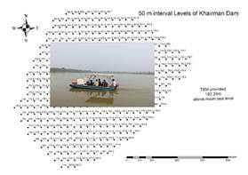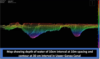 Map showing depth of water of 10cm interval at 10m spacing and contour at 30 cm interval in Upper Ganga Canal