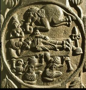 Figure 15: Pillar Medallion portraying Mayadevi’s dream of a Celestial Elephant, attended by three Royal Chamber Maids, Bharhut Gallery, Indian Museum, Kolkata