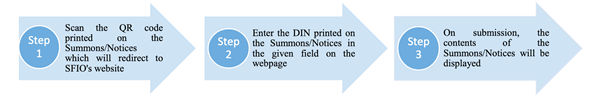 गंभीर धोखाधड़ी जांच कार्यालय द्वारा जारी किए गए सम्मन/नोटिस के ऑनलाइन सत्यापन की प्रणाली प्राप्तकर्ता को प्राप्त संचार की प्रामाणिकता को तुरंत सत्यापित करने में मदद करने के लिए स्थापित की गई है।