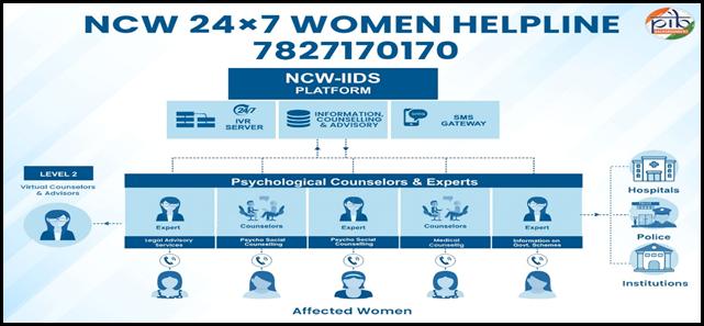 भारत सरकार ने किसी भी प्रकार की हिंसा या संकट का सामना करने वाली महिलाओं को 24x7 आपातकालीन और गैर-आपातकालीन सहायता प्रदान करने के उद्देश्य से 01 अप्रैल, 2015 को महिला हेल्पलाइन (डब्ल्यूएचएल) योजना का सार्वभौमिकरण शुरू किया। यह योजना एक टोल-फ्री नंबर 181 के माध्यम से राष्ट्रव्यापी सहायता प्रदान करती है, जो महिलाओं को एक रेफरल प्रणाली के माध्यम से सेवाओं से जोड़ती है।