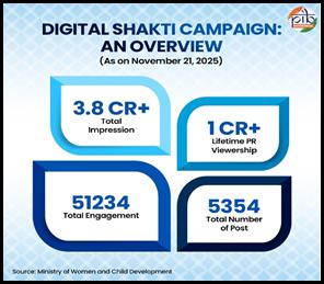 राष्ट्रीय महिला आयोग डिजिटल शक्ति अभियान को लागू कर रहा है। यह एक अखिल भारतीय परियोजना जिसका उद्देश्य महिलाओं और लड़कियों को डिजिटल रूप से सशक्त और कुशल बनाना है। सुरक्षित ऑनलाइन स्थान बनाने की अपनी प्रतिबद्धता के अनुरूप, डिजिटल शक्ति महिलाओं को खुद की सुरक्षा करने और ऑनलाइन अवैध या अनुचित गतिविधियों के खिलाफ कार्रवाई करने के लिए आवश्यक कौशल और जागरूकता प्रदान करती है।