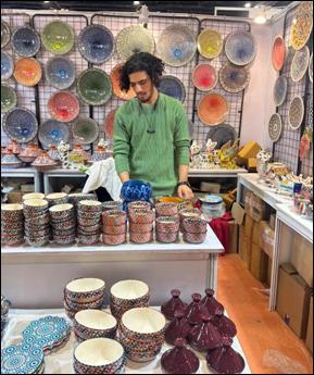 भीड़भाड़ वाले विदेशी स्टॉलों के बीच 26 साल के ट्यूनीशिया के अहमद शाहिद खड़े दिखाई देते हैं। उनके स्टॉल पर उत्तर अफ्रीकी शिल्प की झलक देखने को मिलती है। इस स्टॉल पर हाथ से चित्रित चीनी मिट्टी के सामान, जैतून की लकड़ी से बने रसोई में काम आने वाले बर्तन, लैंप और सजावटी वस्तुएं अपनी सुंदरता से लोगों का ध्यान खींच रही हैं। इनका सौंदर्य अहमद के वतन के शिल्प की विरासत को प्रतिबिंबित करता है।