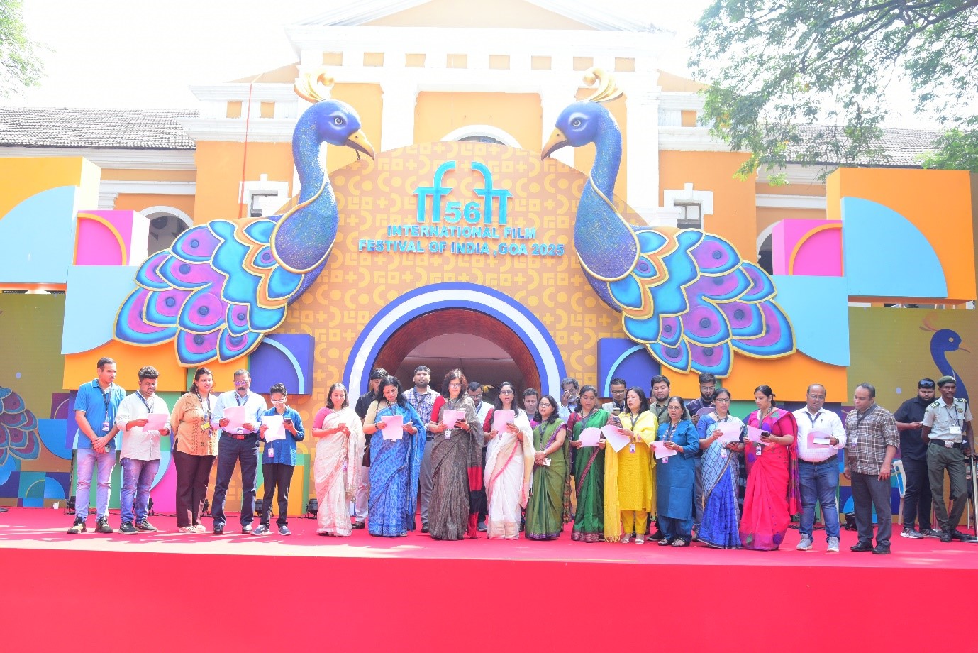 संविधान दिवस के उपलक्ष्य में, भारतीय अंतर्राष्ट्रीय फिल्म महोत्सव (इफ्फी) में प्रेस सूचना कार्यालय (पीआईबी) के अधिकारियों ने संविधान की प्रस्तावना का पाठ किया और उत्साहपूर्वक संविधान दिवस मनाया