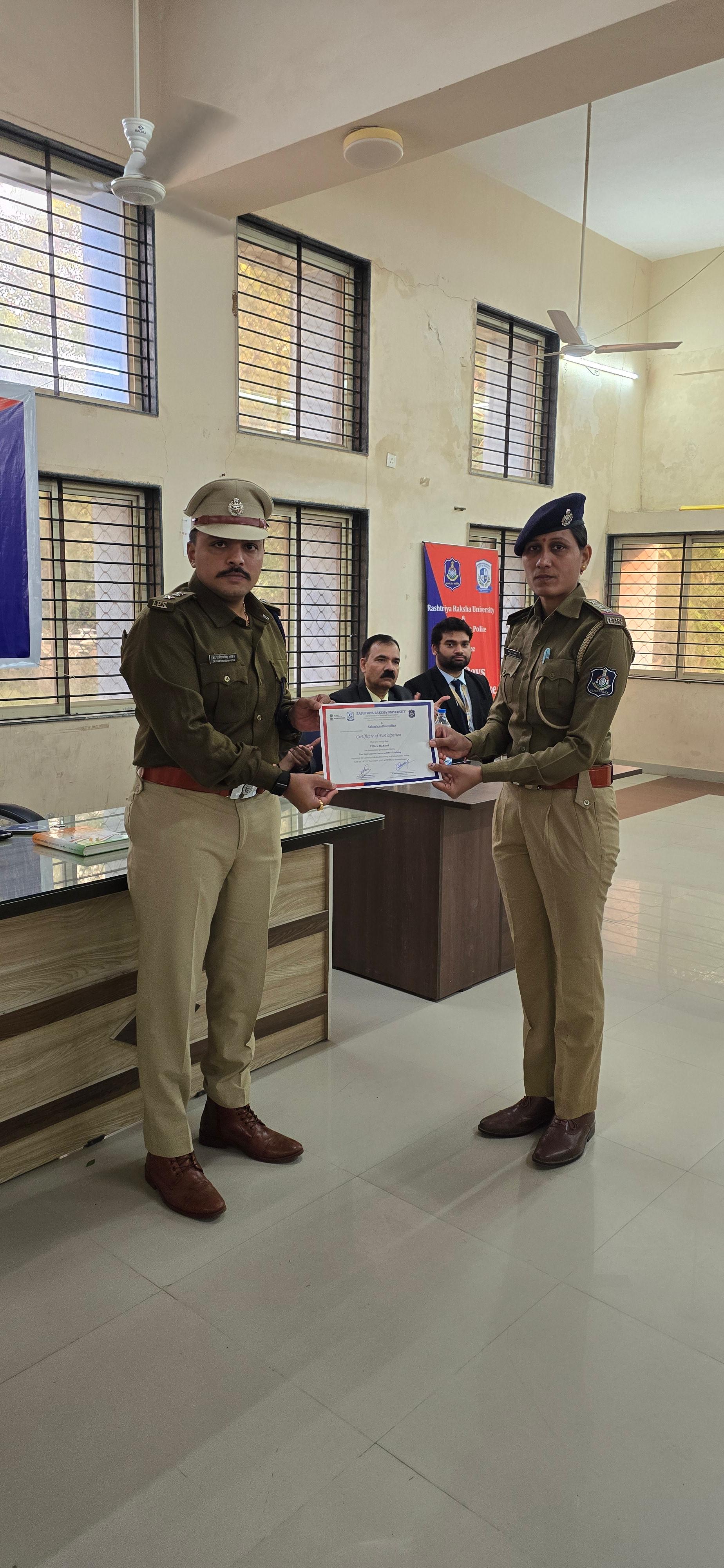 Rashtriya Raksha University, in collaboration with Sabarkantha Police, successfully concluded the Two-Day Capsule Course on SMART Policing held from 24–25 November 2025. The programme marked the participation of Dr. Parthrajsinh Gohil IPS, SP Sabarkantha and Dr. Dharmeshkumar Prajapati, Registrar, RRU, who graced the sessions with their presence.