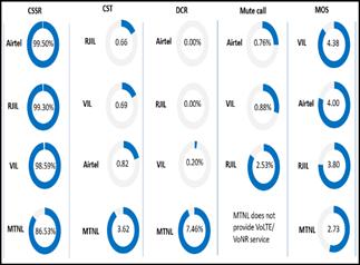 Call Silence/Mute Rate: Airtel, RJIL and VIL have silence call rate of 0.76%, 2.53% and 0.88% respectively in packet switched network (4G/5G).