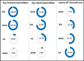 Latency (Overall): Airtel, MTNL, RJIL & VIL 50th percentile latency is 11.69 ms, 21.32 ms, 15.18 ms & 35.03 ms respectively.