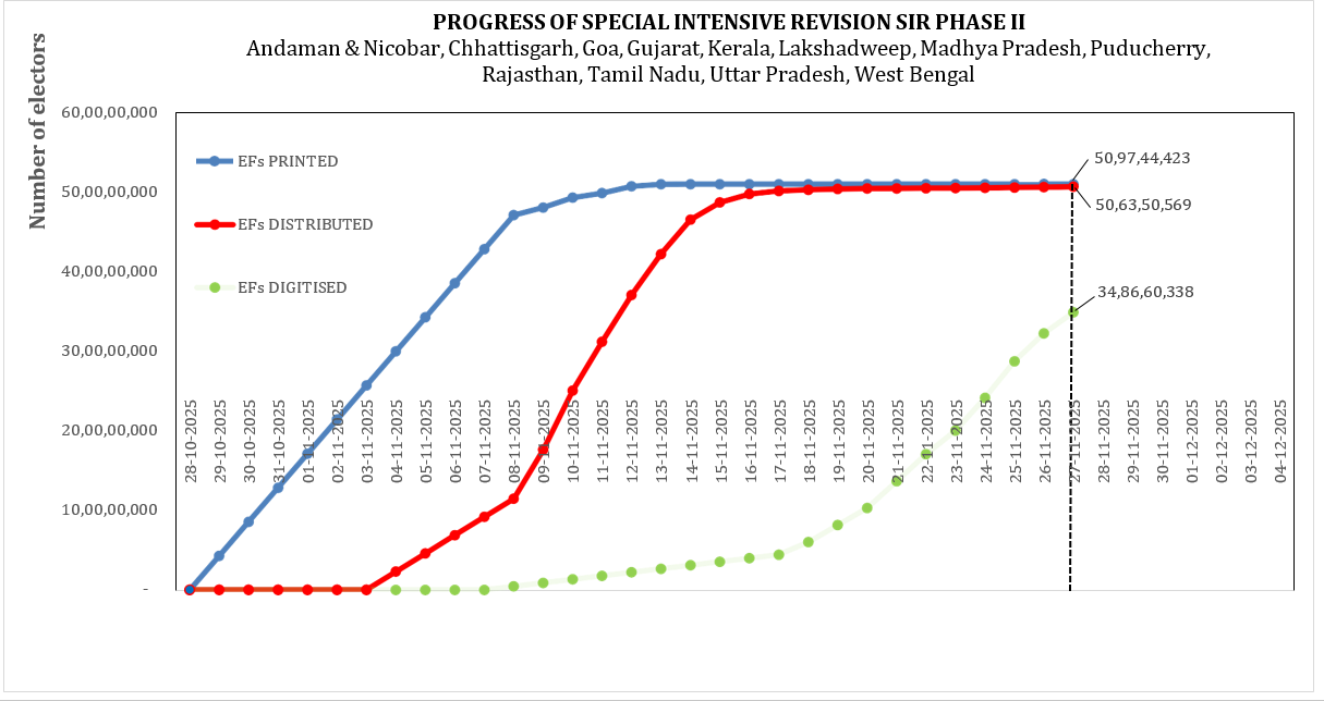 * इन आंकड़ों में राजस्थान के 193-अंता विधानसभा क्षेत्र के आंकड़े शामिल नहीं हैं, क्योंकि विधानसभा क्षेत्र में उपचुनाव की वजह से विशेष गहन पुनरीक्षण स्थगित कर दिया गया था।