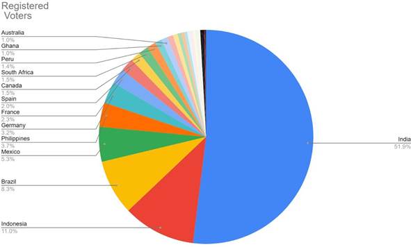 पंजीकृत मतदाता (35 IIDEA सदस्य देशों में कुल मतदाता): 1,887,164,374