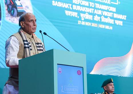 रक्षा मंत्री श्री राजनाथ सिंह ने 28 नवंबर, 2025 को नई दिल्ली में ‘परिवर्तन के लिए सुधार- सशक्त, सुरक्षित और विकसित भारत' विषय पर आयोजित चाणक्य रक्षा संवाद में कहा कि भारत की आर्थिक वृद्धि, तकनीकी क्षमताओं और विदेश नीति ने देश को बदलते वैश्विक परिवेश में संतुलन और जिम्मेदारी की आवाज बना दिया है। इसलिए हिंद-प्रशांत और ग्लोबल साउथ के देश हमें एक विश्वसनीय भागीदार के रूप में देख रहे हैं। उन्होंने कहा कि भारत सभ्यतागत मूल्यों में निहित जिम्मेदारी, रणनीतिक स्वायत्तता और आत्मविश्वास की भावना के साथ आज की वैश्विक चर्चाओं को आकार दे रहा है और इसने जो वैश्विक विश्वास अर्जित किया है, वह महत्वपूर्ण सुधारों और राष्ट्रों की संप्रभुता के सम्मान और नियम-आधारित व्यवस्था के लिए इसके निरंतर रुख के कारण है।