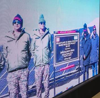 राष्ट्रीय ताप विद्युत निगम ने लद्दाख के चुशुल में समुद्र तल से 4,500 मीटर की ऊंचाई पर भारतीय सेना के लिए ग्रीन हाइड्रोजन माइक्रोग्रिड परियोजना स्थापित की है। इसका उद्देश्य ग्रिड से न जुड़े सैन्य प्रतिष्ठानों से जीवाश्म ईंधन वाले डीजी सेटों को बदलना और प्रति वर्ष 1500 टन कार्बन उत्सर्जन को कम करना है।