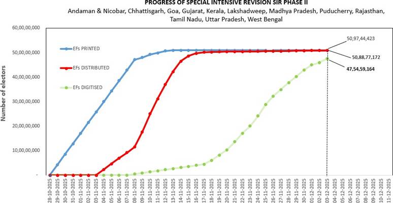 इन आंकड़ों में राजस्थान की 193-अंता विधानसभा के आंकड़े शामिल नहीं हैं, क्योंकि विधानसभा में उपचुनाव के कारण एसआईआर स्थगित कर दिया गया था और गणना चरण 8 दिसंबर से शुरू होगा।