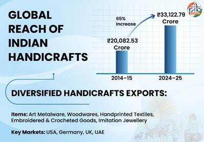 With an enriching combination of rich heritage, skilled artisans, and consistent policy support, India’s handicraft sector is well-placed to drive inclusive growth, support rural livelihoods, and contribute meaningfully to India’s economic progress in the coming years.