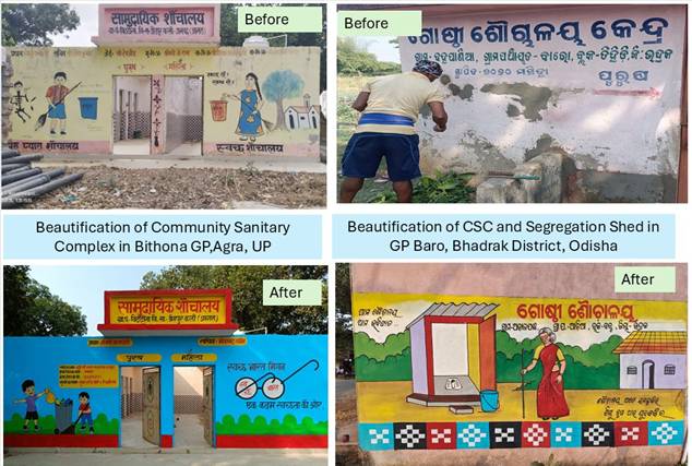 · एक लाख से अधिक घरेलू शौचालय (आईएचएचएल) और 5500 से अधिक सामुदायिक स्वच्छता परिसर (सीएससी) की मरम्मत और सौंदर्यीकरण किया गया।
