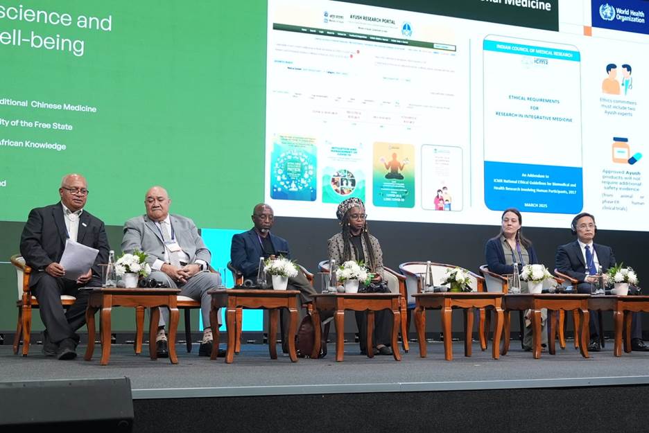 The first session, Plenary - 1– “Restoring Balance: The Science and Practice of Health and Well-Being,” brought together leaders and knowledge holders from WHO, the Ministry of Ayush, China’s National Administration of Traditional Chinese Medicine, South African Indigenous Knowledge Systems, and experts from Canada and New Zealand. The dialogue underscored persistent imbalances in knowledge access, governance structures and planetary health, and highlighted the importance of integrating diverse knowledge systems, strengthening scientific rigor, and protecting biodiversity to advance global health equity.