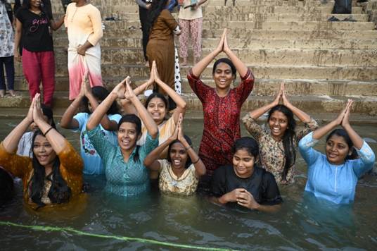 काशी तमिल संगमम 4.0 के दूसरे दिन, तमिलनाडु से आए छात्र प्रतिनिधिमंडल ने हनुमान घाट का दौरा किया, जहां उन्होंने गंगा में स्नान किया और खुशहाली और समृद्धि के लिए प्रार्थना की। उन्हें विभिन्न घाटों के इतिहास और महत्व के बारे में जानकारी दी गई।