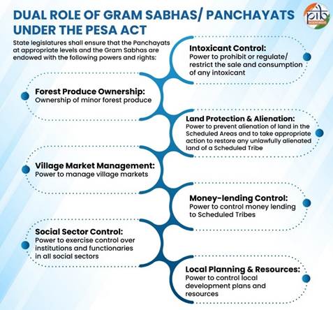 The enhanced powers of the Gram Sabhas form the heart of the PESA Act, allowing tribal communities more authority over their own village governance.