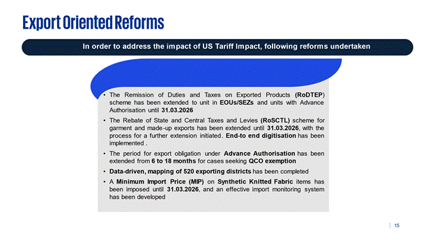 In order to address the impact of US Tariff Impact, following reforms undertaken: