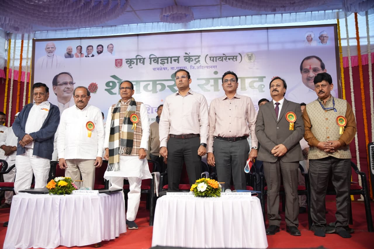 नई दिल्ली- केन्द्रीय कृषि एवं किसान कल्याण व ग्रामीण विकास मंत्री शिवराज सिंह चौहान ने महाराष्ट्र प्रवास के दौरान अहिल्यानगर के बालेश्वर में कृषि विकास केन्द्र का भ्रमण कर किसानों से संवाद किया। शिवराज सिंह ने साल के अंतिम दिन खेत-खलिहान से जुड़े मुद्दों पर किसानों के साथ संवाद करते हुए कहा कि, केंद्र सरकार किसान कल्याण के लिए पूरी प्रतिबद्धता के साथ कार्य कर रही है। साथ ही केन्द्रीय मंत्री हितग्राहियों को हितलाभ भी वितरित किए।