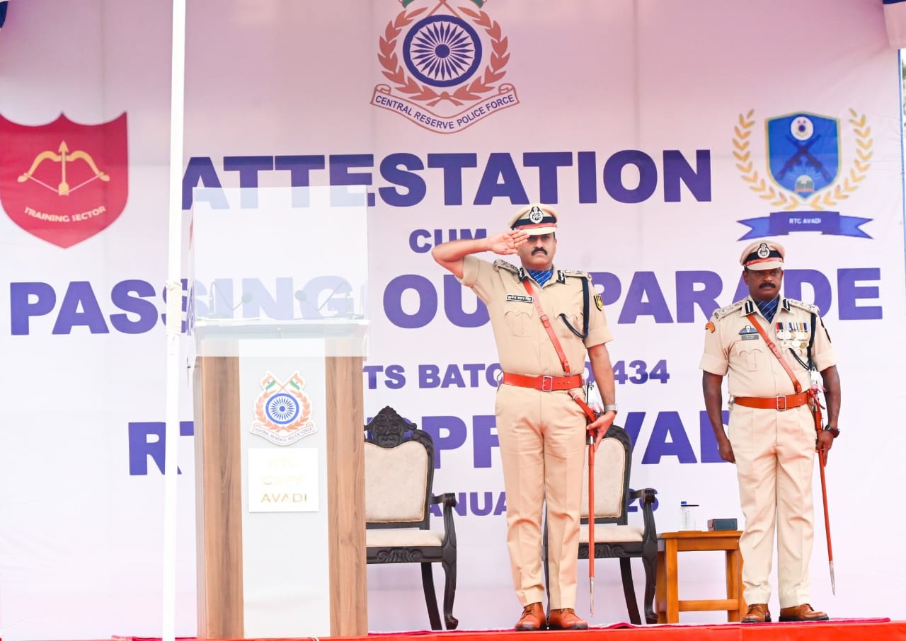 The Recruit Training Centre (RTC) of the Central Reserve Police Force (CRPF) in Avadi, Tiruvallur District, conducted the Passing Out Parade for 1,384 recruits of Batch No. 434 today. Shri Gyanendra Pratap Singh, IPS, Director General, CRPF, attended the ceremony as the Chief Guest, where he reviewed the parade and took the salute. The event was attended by senior officers including Shri Deepak Kumar, IPS, SDG (Trg), Shri Ravideep Singh Sahi, ADG (South Zone), Shri T. Vikram, IPS, IG (South Sector), and Shri Sandeep Datta, IG (Trg), alongside representatives from the Local Administration and the Armed Forces.