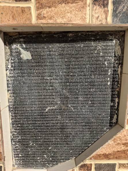 One such inscription is located near the museum in Prabhas Patan, beside the old Ram Temple in Bhadrakali lane. Preserved at the residence of Sompura Brahmin Dipakbhai Dave, it remains embedded in the wall of the ancient Bhadrakali Temple in his courtyard.