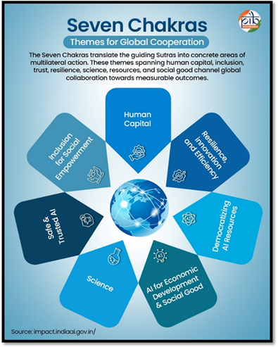 - Human Capital: This chakra focuses on building an equitable AI reskilling ecosystem through targeted skilling. For India, this strengthens workforce readiness for the AI economy, aligned with national development priorities.