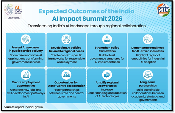 Taking forward outcomes from major international AI forums, India’s approach through the India–AI Impact Summit 2026 will focus on translating global discussions into development outcomes aligned with national priorities under the IndiaAI mission and Digital India Initiative. It will strengthen multilateral cooperation while advancing practical, people-centric AI frameworks relevant to India’s governance, economy, and society.