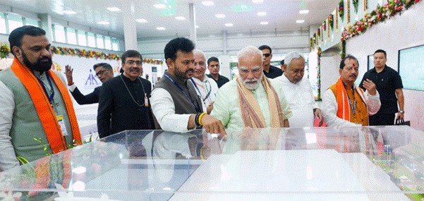 An ultra-modern terminal was inaugurated at Patna airport, which has been developed at the cost of ₹1,200 crore. The airport spans over 65,150 square meters and is designed to handle 3,000 passengers during peak hours and up to one crore passengers annually.