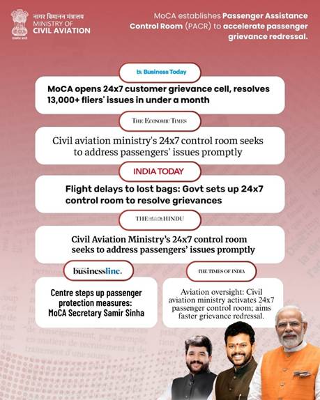 Ministry of Civil Aviation, under the leadership of Civil Aviation Minister Shri Ram Mohan Naidu, decided to establish a permanent, 24×7 Passenger Assistance Control Room (PACR). It was operationalised for real-time monitoring of aviation operations and expedited redressal of passenger grievances, institutionalising a passenger-first governance approach.