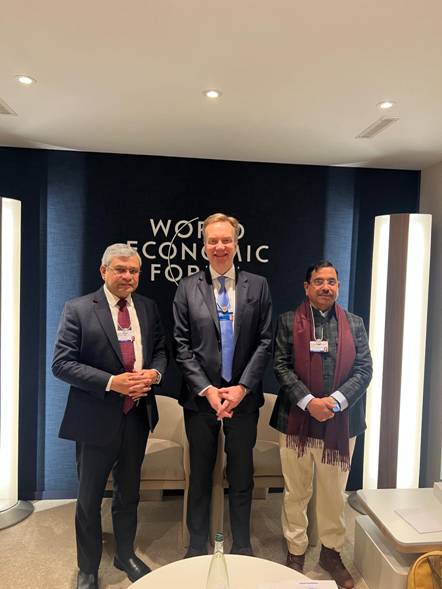Shri Pralhad Joshi held a constructive discussion with Børge Brende, President and CEO, World Economic Forum along with Union Minister of Railways, Electronics & IT and Information & Broadcasting Shri Ashwini Vaishnaw. The discussions focused on the importance of global cooperation in addressing shared economic and developmental challenges, the role of multilateral platforms such as the World Economic Forum in building global consensus, and the need for sustained dialogue between governments, industry and stakeholders to advance sustainable, resilient and inclusive growth, including across energy and development sectors.