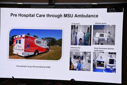 स्वास्थ्य अनुसंधान विभाग के सचिव और आईसीएमआर के महानिदेशक डॉ. राजीव बहल ने असम सरकार को मोबाइल स्ट्रोक यूनिट (एमएसयू) सौंपते हुए कहा, “मोबाइल स्ट्रोक यूनिट सबसे पहले जर्मनी में विकसित की गई थीं और बाद में प्रमुख वैश्विक शहरों में इनका मूल्यांकन किया गया। भारत ने पूर्वोत्तर भारत के ग्रामीण, दूरस्थ और दुर्गम भूभागों में ऐसी यूनिटों का मूल्यांकन किया है। हम ग्रामीण क्षेत्रों में तीव्र इस्केमिक स्ट्रोक के रोगियों के उपचार के लिए आपातकालीन चिकित्सा सेवाओं के साथ एमएसयू के सफल एकीकरण की रिपोर्ट करने वाला विश्व स्तर पर दूसरा देश भी हैं।”