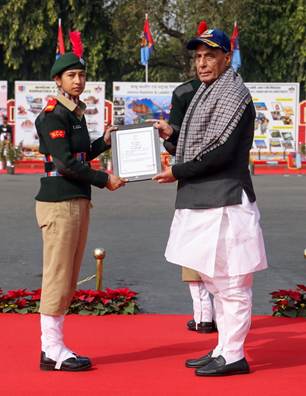 As part of the event, an ‘Investiture Ceremony’ was held, wherein the cadets were awarded with the Raksha Mantri Padak and Commendation Cards by Shri Rajnath Singh for their outstanding performance & dedication to duty. This year, the Raksha Mantri Padak was conferred upon Cadet Arpun Deep Kaur of Jammu Kashmir & Ladakh Directorate and Cadet Palden Lepcha of West Bengal & Sikkim Directorate. The Commendation Cards were presented to Petty Officer Lisha Dejappa Suvarna of Karnataka & Goa Directorate, Junior Under Officer Pavan Bhagel of Madhya Pradesh & Chhattisgarh Directorate, Corporal Radha Dorjee of North Eastern Region Directorate, and Cadet Prince Singh Rana of Uttarakhand Directorate.