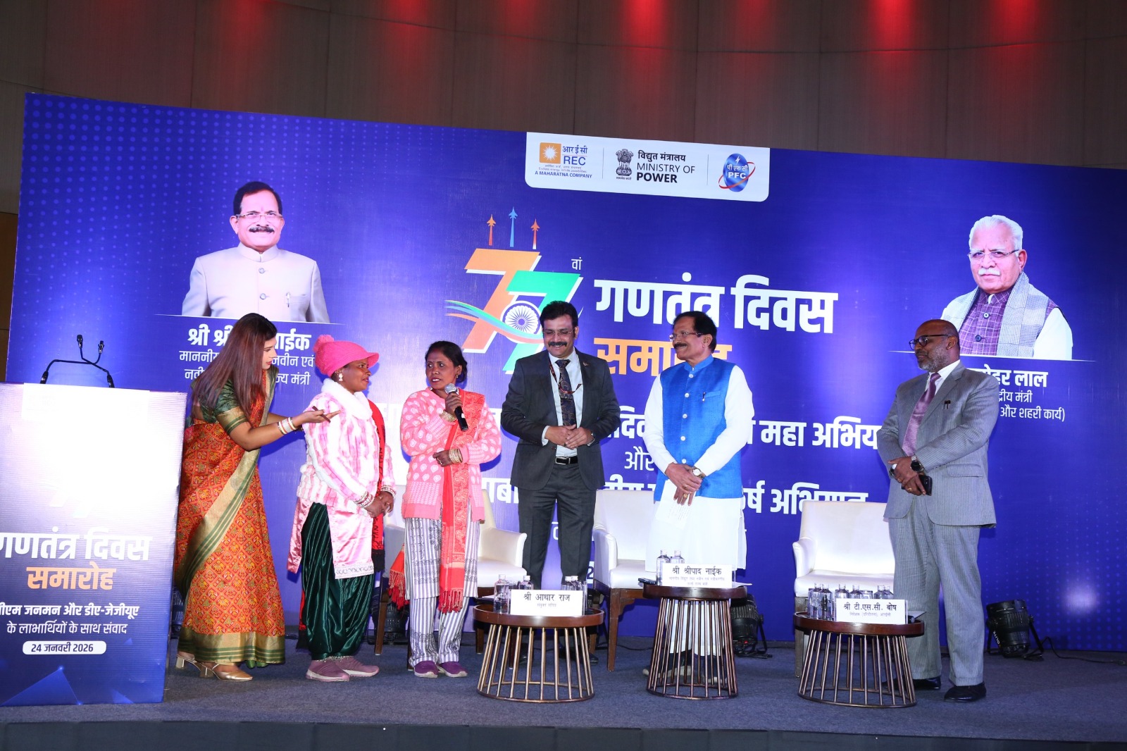 On the eve of the 77th Republic Day, the Hon’ble Minister of State for Power and New & Renewable Energy Shri Shripad Yesso Naik interacted with beneficiaries of flagship schemes of Government of India, PM-JANMAN, DA-JGUA and PM-KUSUM, who have been specially invited to attend the Republic Day Celebration this year.
