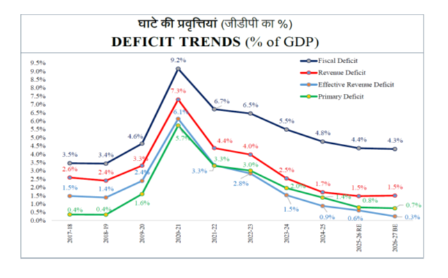FISCAL DEFICIT FOR BE 2026-27 IS ESTIMATED AT 4.3%, WHILE FISCAL DEFICIT FOR RE 2025-26 IS 4.4%