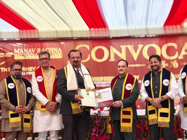 Union Minister for Health & Family Welfare and Chemicals & Fertilizers, Shri Jagat Prakash Nadda, addressed the Convocation Ceremony 2025–26 of Manav Rachna Educational Institutions (MREI), held with academic grandeur and enthusiasm.