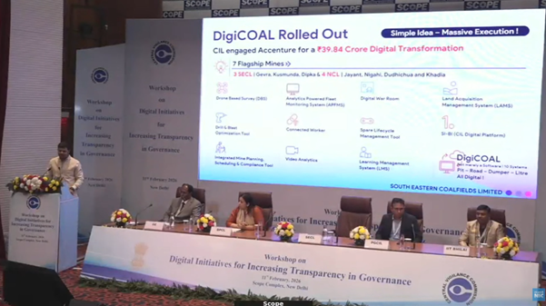 In a significant recognition of Coal Ministry’s ongoing efforts to modernise and digitise the mining sector, South Eastern Coalfields Limited (SECL), a subsidiary of Coal India Limited under the Ministry of Coal, showcased its flagship digital transformation initiative, DigiCOAL, at the National Workshop on “Digital Initiatives for Increasing Transparency in Governance” organised by the Central Vigilance Commission at the SCOPE Convention Centre in New Delhi on 11 February 2026.
