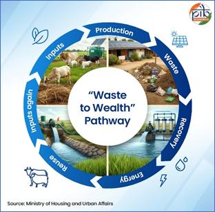अपशिष्ट को संपदा में परिवर्तित करने की इन योजनाओं को सहायता दे रही हैं कृषि अवसंरचना कोष (ए आई एफ) तथा पशुपालन अवसंरचना विकास कोष (ए एच आई डी एफ) [Agriculture Infrastructure Fund (AIF) and Animal Husbandry Infrastructure Development Fund (AHIDF) ]और इससे कृषि अपशिष्ट को संपदा में परिवर्तित करने हेतु आवश्यक अवसंरचना का विकास हो रहा है। इसके अतिरिक्त, जल शक्ति मिशन घरेलू एवं औद्योगिक अपशिष्ट जल के गैर-पेय प्रयोजनों, जैसे कृषि, भूमि उपयोगों तथा बागवानी, में पुनः उपयोग को प्रोत्साहित करता है। ये सभी पहलें कृषि एवं संबद्ध क्षेत्रों में संसाधन पुनर्प्राप्ति, पुनः उपयोग और मूल्य संवर्धन को बढ़ावा देकर ‘अपशिष्ट से संपदा’ दृष्टिकोण की दिशा में कार्य कर रही हैं।