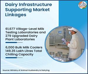 - 31,908 dairy cooperative societies have been organised, integrating 17.63 lakh producers into formal value chains and increasing daily milk procurement by 120.68 lakh kilograms.