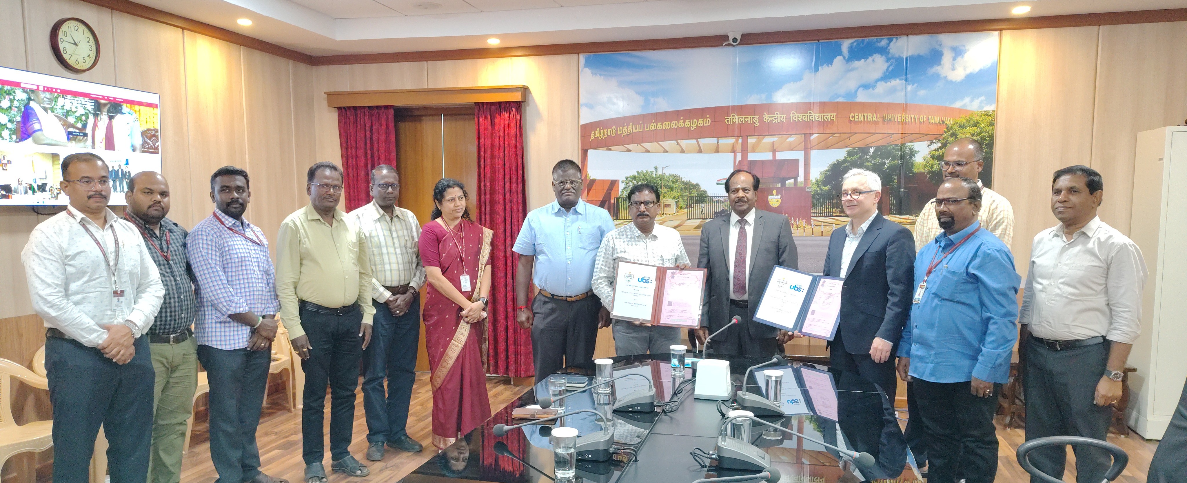 Senior university Officers, including Shri. CA GR Giridharan, Finance Officer, Prof. Sulochana Shekhar, Controller of Examinations, Dr R. Parameshwaran, Librarian, and various faculty members were present during the signing of the MoU between the Central University of Tamil Nadu (CUTN) India and Université Bretagne Sud (UBS), France.