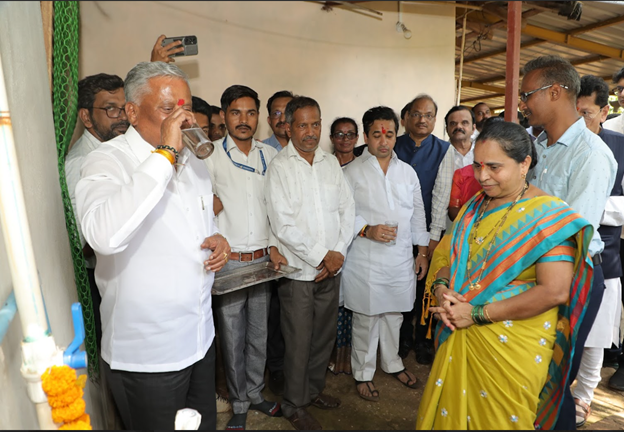 During the celebration Shri V. Somanna, MoS, Ministry of Jal Shakti drank water directly from the tap and in his address, he shared that the test of water is so good, and the quality is maintained under JJM that we can drink it directly because the water is being treated before supply. He appreciated the community and urged to work for rainwater harvesting.