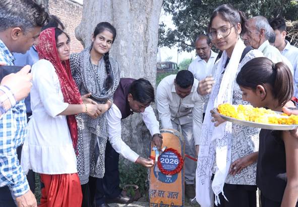 The events also included symbolic Jal Bandhan activities at village water infrastructure sites, where he tied sacred threads to reaffirm the community’s commitment to protecting and maintaining village water systems, thereby strengthening community ownership of rural drinking water services.