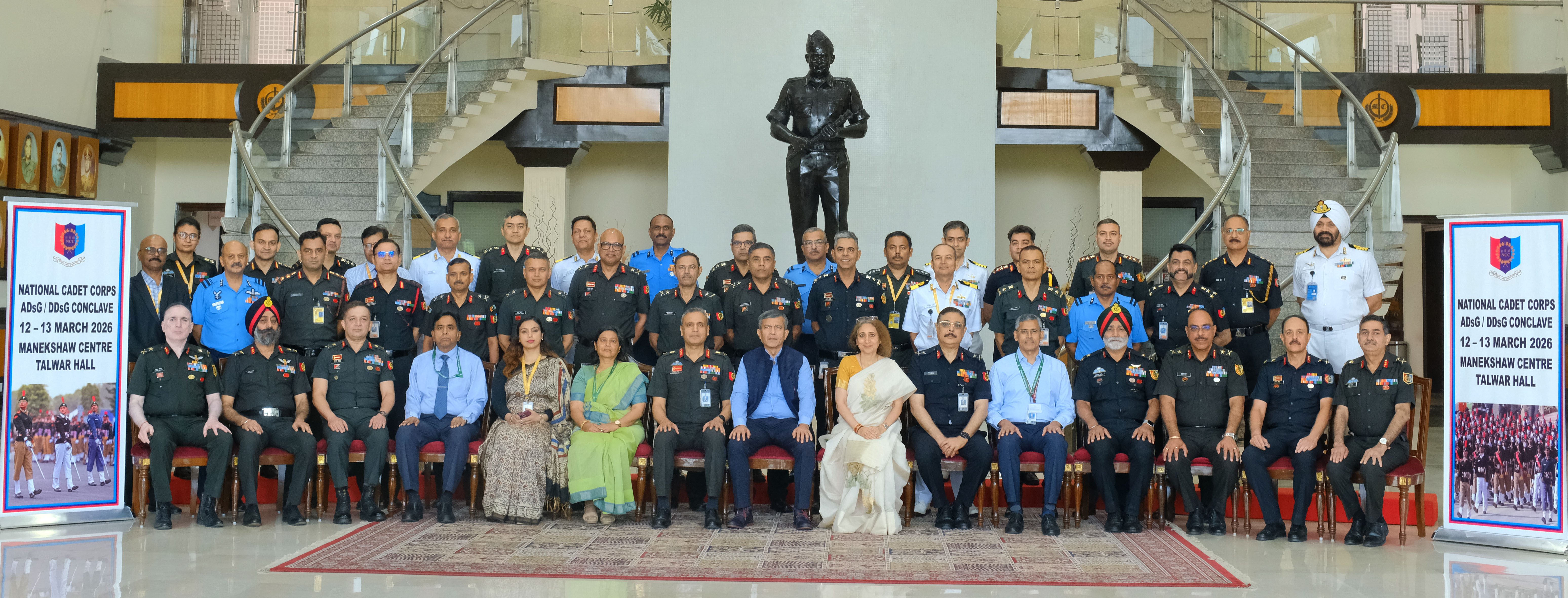The two-day conference of the Additional Directors General (ADGs) and Deputy Directors General (DDGs) of the National Cadet Corps (NCC) commenced at the Manekshaw Centre, New Delhi, on 12 March 2026. Defence Secretary Shri Rajesh Kumar Singh addressed the conference on the opening day.