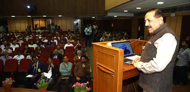 PHOTO: Union Minister Dr. Jitendra Singh addressing the inaugural session of GeodCon-26, the first National Conference on Geodesy, at INSA, New Delhi on Thursday.