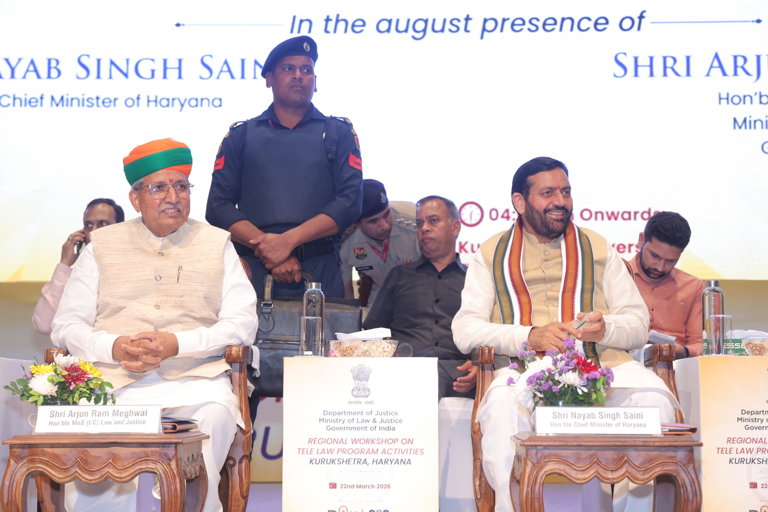 A Regional Workshop on Tele-Law Programme Activities under the Designing Innovative Solutions for Holistic Access to Justice, (DISHA) Scheme of the Department of Justice, Ministry of Law and Justice, Government of India, was held today i.e. on 22.03.2026 at Kurukshetra University Auditorium, Kurukshetra, Haryana.